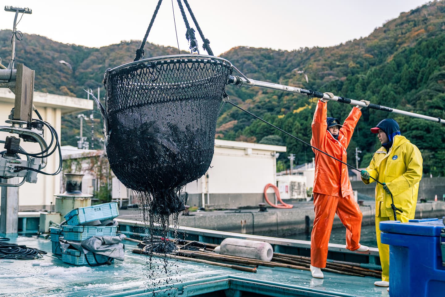 若狭の漁村は、800年の歴史が連続して確認できる、日本でも極めて稀な地域です。中世の活況を経て、近世初期にはすでに 大敷網漁(おおしきあみりょう) の原型が成立していました。これは現在も続く、地域の人々が共同で行う大規模な定置網漁で、若狭の漁業文化の中心をなすものです。さらに、海士(あま)による素潜り漁など、海と一体になった生業が今なお受け継がれています。