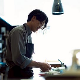 「走った分だけ食べる!」派のあなたへ。 TV出演歴もあるオーナーシェフが地元に凱旋し展開する国内でも希少なフレンチ民宿。若狭の地で長い時間をかけて育まれてきた風土、暮らし、食の知恵。それらを独自の目線でほどき、重ね、結び直す。この土地でしか生まれない重なりを大切にしながら、風土を編み、かたちにする。どこか懐かしく、けれどどこにもない、よしおかやならではのフランス料理をご堪能ください。