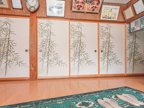 - お風呂、トイレ(男女別)、禁煙ルーム、大広間、駐車場、自動販売機