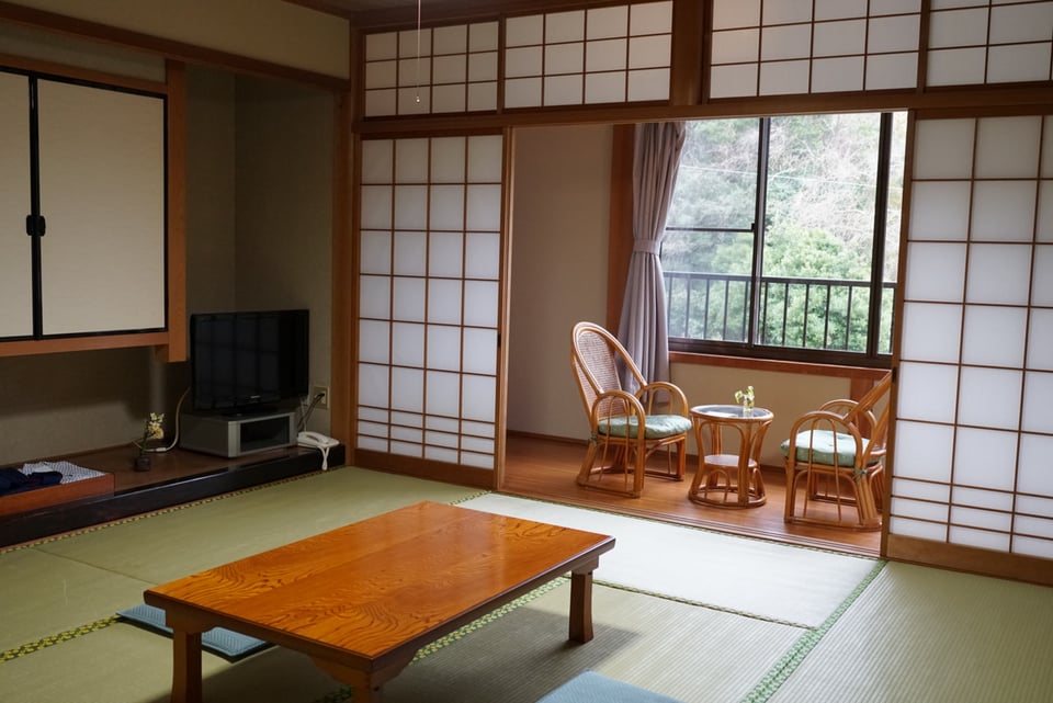 - お風呂、トイレ(男女別)、共用冷蔵庫、大広間、駐車場